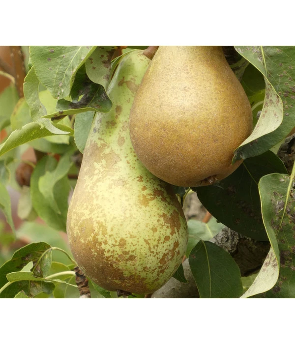 Hier können wir Ihnen den absoluten Liebling unzähliger Birnenfans vorstellen: die Bio Herbstbirne ‘Conference‘. Sie begeistert nicht nur mit ihrem süßen Aroma, in das sich eine feine Würze mischt, sondern auch mit der Konsistenz ihres saftigen, zart schmelzenden Fruchtfleisches. Die Sorte stammt ursprünglich aus Großbritannien und ist bereits seit 1885 im Handel, so dass sie inzwischen zu den meistangebauten Birnensorten gehört. Völlig zu Recht, wie auch Sie zustimmen werden, wenn Sie das erste Mal beobachten, wie die mittelgroßen Früchte mit dem schlanken Hals und der grüngelben, berosteten Schale an dem stattlichen Baum reifen und in den Monaten September und Oktober Ihren Obstteller bereichern. Die reiche Ernte kündigt sich aber schon im April und Mai an, wenn sich der Birnbaum in einen Flor schneeweißer Blüten hüllt, über dem das vergnügte Summen und Brummen vieler Bienen, Hummeln und anderer Nutzinsekten zu hören ist. Verzichten Sie nicht auf diesen außergewöhnlichen Genuss und setzen Sie die Bio Herbstbirne ‘Conference‘ in Ihren Garten!