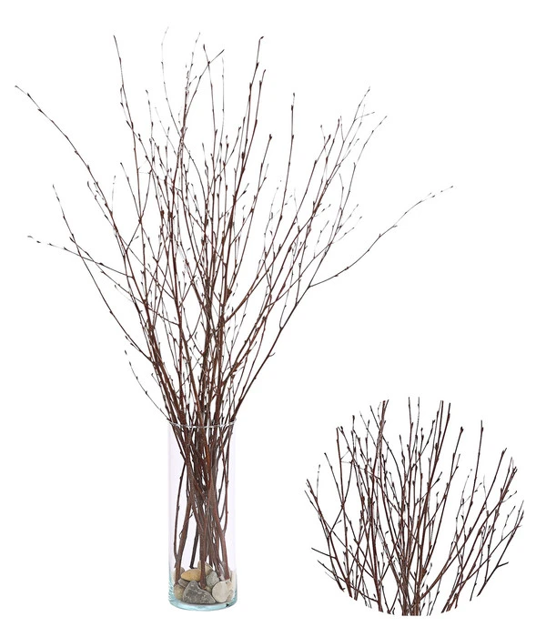 Wurden früher Birken- oder Haselnusszweige nur zu Ostern ins Haus geholt und mit Eiern, Küken und ähnlichem dekoriert, so geht in den letzten Jahren der Trend dahin, das ganze Jahr über die Wohnräume mit Zweigen zu schmücken. Gerade die schlanken, aufrecht wachsenden Birkenzweige lassen sich dabei fantastisch vielseitig einsetzen. Ganz klassisch ist es zum Beispiel, einen Birkenzweige-Bund in eine hohe Bodenvase zu stellen und das natürliche Flair – ohne weitere Zutat – im Raum wirken zu lassen. Da wir Ihnen diesen Birkenzweige-Bund sogar in verschiedenen Farben anbieten, erweitert das die Bandbreite Ihrer kreativen Möglichkeiten um ein Vielfaches. Kombinieren Sie den Birkenzweige-Bund Ton-in-Ton mit der Vase oder setzen Sie bewusst auf farbstarke Kontraste. Die Raumwirkung wird mal elegant, mal extravagant, mal klassisch sein.