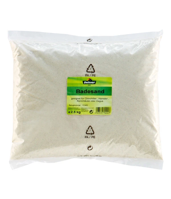 Ob im Chinchilla- Rennmaus- oder Hamsterkäfig: Badesand sollte in keinem Kleintierkäfig fehlen. Der Tierbedarf ist unverzichtbar für die Fellpflege, denn er hält das Fell Ihres kleinen Lieblings fettarm und trocken.