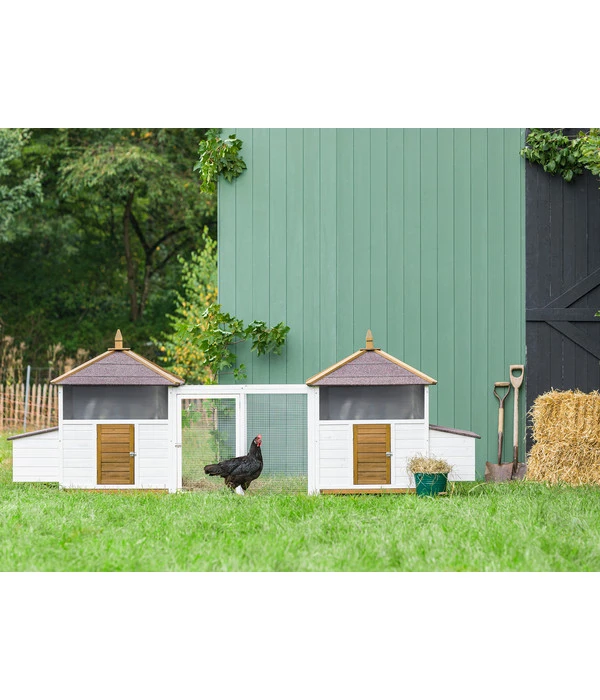 Natürlich können Sie den Dehner Freilauf Florenz auch solo einsetzen, er ist aber perfekt auf den Hühnerstall aus der gleichen Serie zugeschnitten. Wie Sie auf unseren Beispielbildern sehen können, können Sie die einzelnen Elemente beliebig miteinander kombinieren. Ganz so, wie es am besten zu Ihrem Außenbereich und den Anforderungen Ihres Hühnervolks passt.