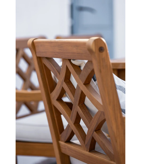 Ihre Terrasse soll Ihr Outdoor-Wohnzimmer werden und dabei stellen Sie an die Möblierung die gleichen Ansprüche wie für den Indoor-Bereich? Schließlich soll auch draußen Ihr Stil zu spüren sein und Sie wollen die gleiche Wohlfühl-Atmosphäre schaffen wie im Haus. Ein Vorhaben, bei dem Sie der Dehner Gartensessel Savona mit seiner ganzen Schönheit und Ausstrahlung unterstützen wird. Denn bestimmt haben Sie gleich erkannt: Dieser Stuhl ist etwas Besonderes. Ganz aus edlem Teakholz gefertigt erfreut er das Auge des Betrachters mit seinen kunstvoll gearbeiteten Streben in der Rückenlehne, mit den sanft geschwungenen Armlehnen und wartet sogar mit gedrechselten Vorderbeinen auf. Schon alleine die Vorstellung, wie gemütlich man auf dem bequemen Kissen sitzen wird, ist verführerisch. Jedoch in nichts zu vergleichen mit dem tatsächlichen Komforterlebnis auf Ihrer Terrasse, wenn der Dehner Gartensessel Savon dort zum stilvollen Platznehmen einlädt. Greifen Sie also gleich zu!