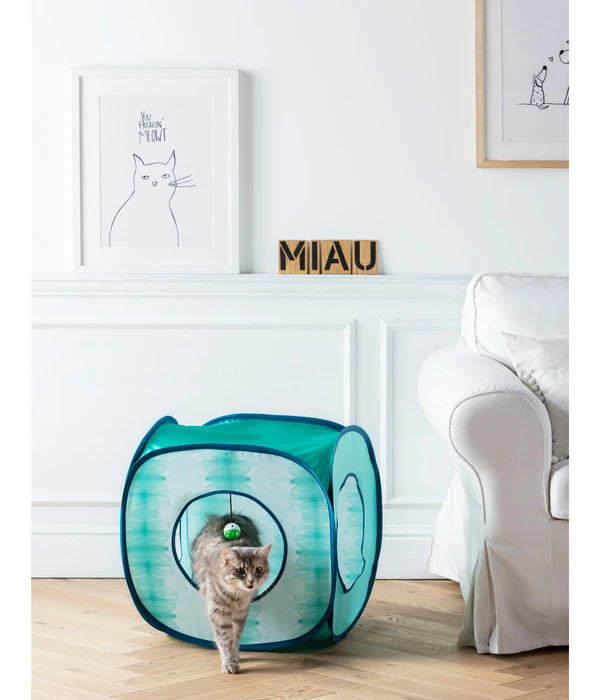 Seien Sie allerdings sicher, dass auch Sie Ihre Freude an dem Dehner Katzenwürfel Dice haben werden. Zum einen macht es einfach Spaß, wenn Sie mithilfe mehrer Würfel ein Abenteuerlabyrinth zusammenbauen, zum anderen lässt sich der Würfel leicht zusammenfalten und wieder verstauen, wenn Ruhe einkehren darf. Für die passende Hygiene garantiert das Katzenspielzeug ohnehin, da Sie ihn ganz bequem mit einem feuchten Tuch abwischen können. Ihre Katze wird sich nach jedem aufregenden Spieltag im Wohnbereich, Garten oder auf der Terrasse dankbar zeigen. Entscheiden Sie sich mit dem Würfeltunnel von Dehner jetzt für ein optimales Spielzeug, das zu einer liebevollen Katzenumgebung beiträgt.