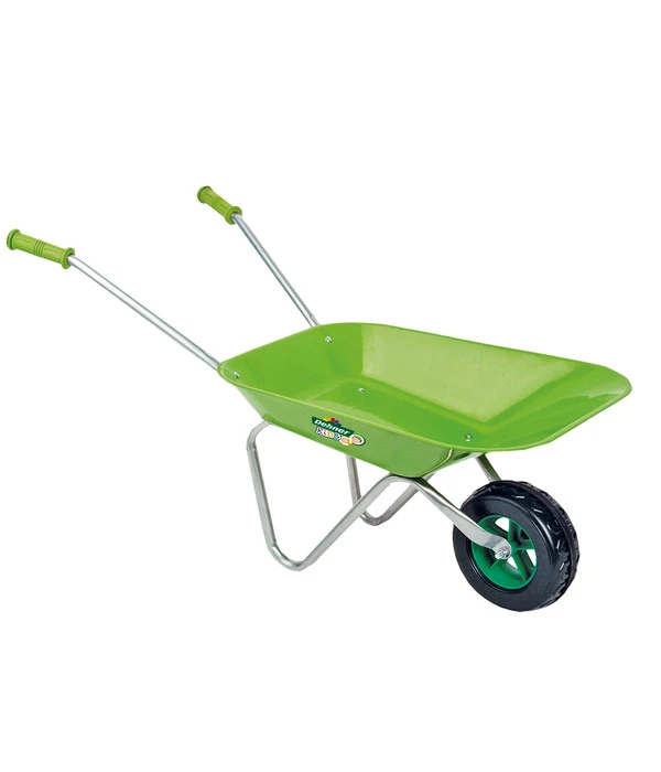 Die Dehner Kids Kinderschubkarre ist das ideale Präsent für kleine Hobbygärtner. Sie besteht aus pulverbeschichtetem Metall und verfügt über ein stabiles Rad aus Hartplastik. Ihr kindgerechtes Design in den Farben Grün und Silber wirkt besonders fröhlich und modern. An der Seite befindet sich das Logo der Marke Dehner Kids. Mit einer 6,5-Liter-Ladefläche und einer maximalen Belastbarkeit von 16 Kilogramm ist die Dehner Kids Kinderschubkarre für kleine Gartenarbeiten optimal geeignet. Aufgrund der komfortablen Plastikgriffe und der extra breiten Ausführung des Rades lässt sich die Kinderschubkarre leicht bedienen.