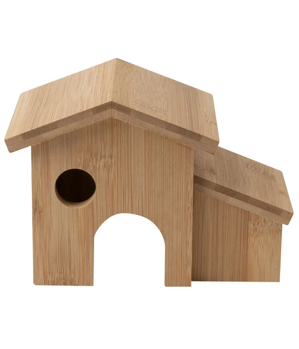 Die Version S ist für Mäuse und Zwerghamster ideal geeignet, in der Größe M finden auch etwas größere Nagetiere wie Gold- und Teddyhamster einen überaus gemütlichen Rückzugsort. So kommt im Gehege bestimmt keine Langeweile auf. Ob als geschützter Schlafplatz, zum Entspannen oder als tolle Versteckmöglichkeit, Ihr kleiner flauschiger Mitbewohner wird bestimmt seine helle Freude an dem Neuzugang in seinem Käfig haben. Bestellen Sie am besten gleich das hübsche Nagerhaus Jorgos aus Bambus, das mit seiner zeitgemäßen Optik ein dekorativer Hingucker für Mensch und Tier ist.
