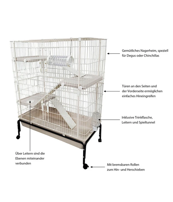 Sie haben kleine Haustiere in Ihrer Wohnung und lieben es, Ihre geliebten Nagetiere so richtig zu verwöhnen? Dann ist das Nagerheim Alvin von Dehner Lieblinge genau das Richtige für Sie. Es ist speziell zur Erfüllung der Bedürfnisse von Degus und Chinchillas konstruiert und bietet mit seinen drei Ebenen, die mit Leitern verbunden sind, sowohl Raum für ausreichend Bewegung und Aktivität als auch Platz zum Entspannen und Schlafen. Zögern Sie nicht länger, tun Sie Ihren kleinen Lieblingen etwas Gutes und bestellen Sie noch heute das Nagerheim Alvin von Dehner Lieblinge ganz einfach direkt zu Ihnen nach Hause.