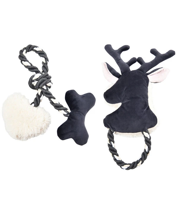 Bei der Herstellung des Weihnachts-Hundespielzeug-Sets hat sich Dehner Lieblinge viele Gedanken gemacht. Schlussendlich wurde es aus 100 % recycelten Plastikflaschen gefertigt, was der Umwelt zugutekommt. Sie sollten Ihr Tier beim Spielen immer beaufsichtigen, um seine Sicherheit zu gewährleisten. Das ist mit diesem niedlichen Hundezubehör aber nicht schwer, denn Ihr Vierbeiner wird sie immer wieder auffordern, gemeinsam mit ihm zu spielen. Tun Sie ihm diesen Gefallen und bestellen Sie dafür das Weihnachts-Hundespielzeug-Set Recycled Deer, Heart & Bone von Dehner Lieblinge jetzt gleich!