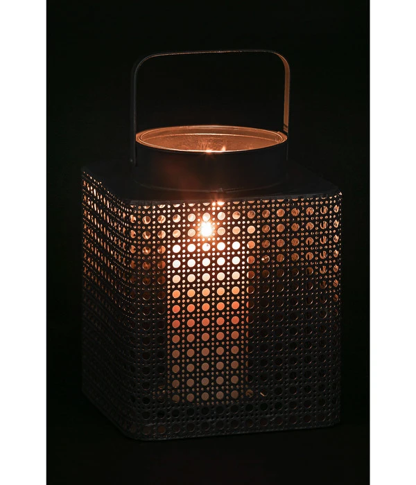 Es gefällt Ihnen sehr, wenn Sie es sich am Abend mit stimmungsvollen Lichtern noch gemütlicher machen? Dann sollten Sie sich die schicke Metall-Laterne Alia von Dehner zulegen. Ihre faszinierende Gitteroptik und das moderne Design sorgen für einen schönen Blickfang im Wohnzimmer, im Flur oder an einem anderen Ort Ihrer Wahl. Stellen Sie eine echte oder eine elektrische Kerze in den Innenraum der hübschen Laterne, und sie strahlt sofort Gemütlichkeit und Wärme aus. Genießen Sie die behagliche Atmosphäre, die Sie nun umgibt, und erfreuen Sie sich an dem schönen Anblick der Laterne Alia der Marke Dehner.