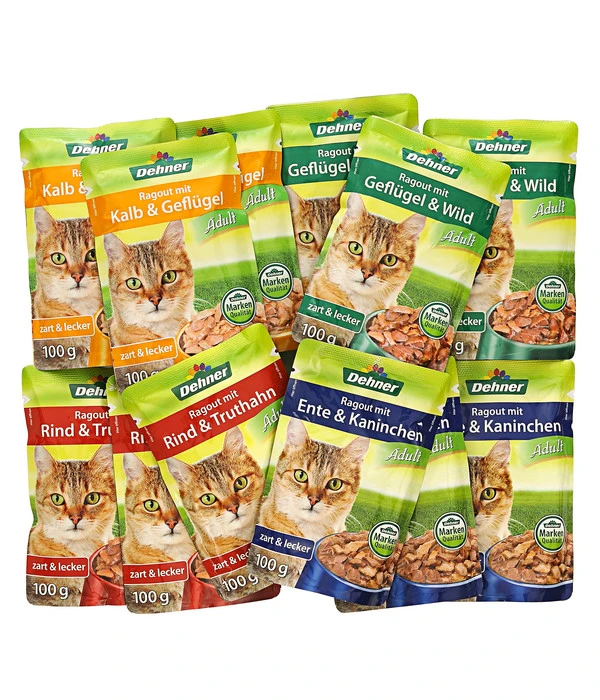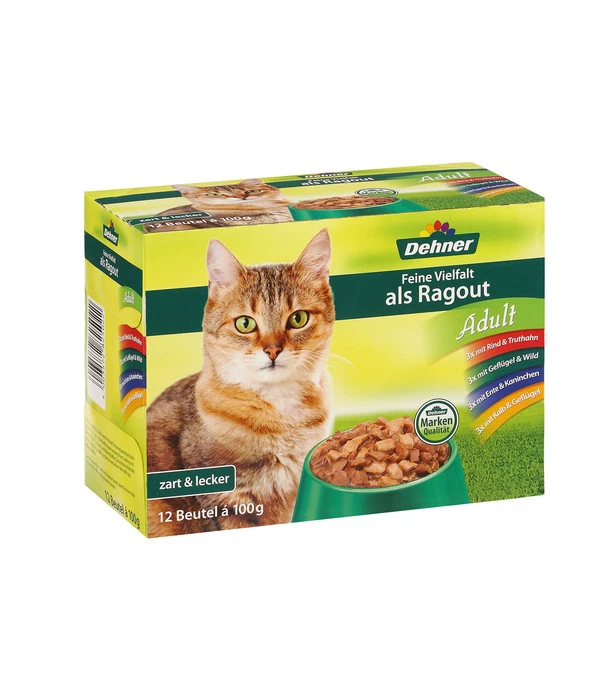 Das Katzenfutter Dehner feine Vielfalt Ragout enthält alles, was Ihre ausgewachsene Katze für eine artgerechte Ernährung benötigt. Das leckere Nassfutter mit zartem Fleisch wird auch Ihre Katze überzeugen. Mit dem Futter für Katzen in Dehner Markenqualität versorgen Sie Ihren Liebling mit allen wichtigen Vitaminen und Mineralstoffen. Die köstliche Mahlzeit wird schonend hergestellt, so dass alle wertvollen Nährstoffe im Katzenfutter gut erhalten bleiben. Das Katzenfutter Dehner feine Vielfalt Ragout sorgt für tägliche Abwechslung im Katzennapf, da sich in dem Multipack praktische Einzelportionen in verschiedenen Geschmackssorten befinden. Gönnen Sie Ihrer erwachsenen Katze das Nassfutter als Ragout von Dehner mit seiner abwechslungsreichen Vielfalt.