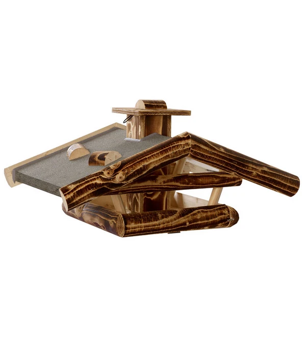 Sie möchten sich ein Vogelhaus für Ihren Garten oder Ihre Terrasse zulegen? Dann ist das geflammte Dehner Natura Vogelhaus & Ständer Watzmann genau das Richtige für Sie! Hier bekommen Sie ein wetterbeständiges Futterhaus inkl. einem stabilem Ständer aus geflammten Fichtenholz. Das prächtige, in Niederbayern handgefertigte Dehner Natura Vogelhaus Watzmann ist bestens verarbeitet und verfügt über ein mit wasserabweisender Teerpappe bespanntes, ausladendes Dach und fachmännisch verkittete Ränder. Das Vogelfutter können Sie ganz einfach über den abnehmbaren Deckel auf dem „Schornstein“ einfüllen. Von allen vier Seiten lässt sich das Dehner Natura Vogelhaus anfliegen und Krähenvögel haben hier keine Chance den kleineren Vögeln das Futter zu stehlen. Um die Bodenplatte und somit das Futter der Vögel einfach sauber zu halten, ist bei diesem großen Vogelhaus eine der seitlichen Holzleisten abklappbar. Mit diesem massiven und hübschen Futterhaus von Dehner Natura bieten Sie Ihren gefiederten Freunden einen sicheren Rast- und Futterplatz.