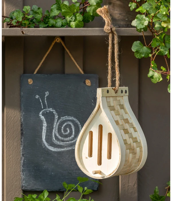 Auch optisch kann das Dehner Natura Insektenhotel Lepido punkten: Es besteht aus wetterfestem Bambus und Sperrholz, besitzt eine tropfenähnliche und dekorative Grundform und harmoniert dank der dezenten Farben bestens mit Ihrer Gartenumgebung. Bringen Sie dieses besondere Insekten- und Schmetterlinghotel einfach mithilfe der integrierten Aufhängevorrichtung an Ästen, Bäumen und Wänden an. Ganz nebenbei kann das schöne Dehner Natura Insektenhotel Lepido auch als interessantes Lernobjekt für Kinder herhalten, um zum Beispiel Schmetterlinge aus nächster Nähe zu beobachten.
