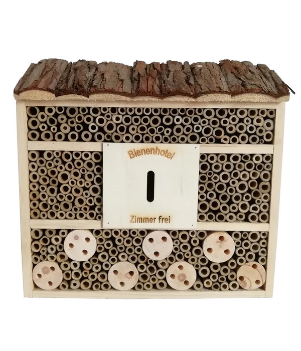 Insektenhotel, speziell für Wildbienen, aus Bambus, Kiefern-, Tannen- und Sperrholz, Maße: 29,5/9,5/28,5 cm