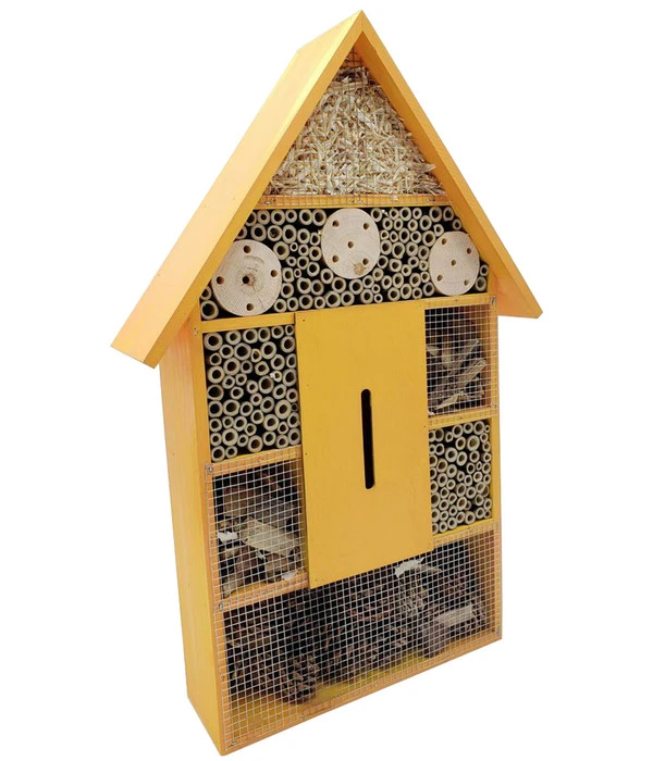 Ein Hotel für Insekten? Was vor 20 Jahren für ungläubige Blicke sorgte, ist jetzt vielen Gartenbesitzern ein echtes und wichtiges Anliegen. Denn heute wissen wir, dass viele Nutzinsekten wie Wildbienen und andere unsere besondere Fürsorge brauchen. Denn die Kulturlandschaft hat sich durch die menschlichen Eingriffe so stark gewandelt, dass den Insekten die Lebensräume fehlen. Und da kommen Nist- und Schutzräume wie das Dehner Natura Insektenhotel Sheffield ins Spiel. Wie Sie sehen können, ist es ein großes Haus mit mehreren Etagen und unterschiedlich großen Kammern. Diese unterschiedliche Größe ist kein Zufall, sondern auf diese Weise bietet das Haus verschiedenen Nutzinsekten-Arten einen sicheren Unterschlupf. Leisten auch Sie einen wichtigen Beitrag zum Erhalt der heimischen Wildbienen und Schmetterlinge und bringen Sie das Dehner Natura Insektenhotel Sheffield in Ihrem Garten an. Denn eins ist klar: Ohne die Bestäubung unserer Obstgehölze und anderer Nutzpflanzen durch die Insekten würde unser Teller weniger reich gedeckt sein.
