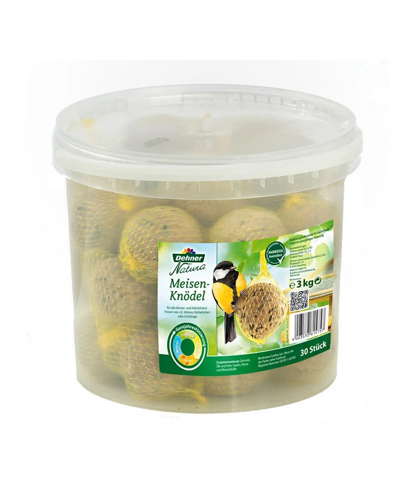 Die Dehner Natura Wildvogelfutter Meisenknödel enthalten die bewährte Mischung aus Getreide, Ölen und Fetten, Saaten, Nüssen und Mineralstoffen, die Vogelexperten für die Ganzjahresfütterung empfehlen. Und außerdem sind die Knödel eine schmackhafte Delikatesse, was Sie daran erkennen können, wie schnell wieder ein leeres Netz am Busch hängt. Die Dehner Natura Wildvogelfutter Meisenknödel gibt’s aber in verschiedenen Packungsgrößen, so dass Sie auch gleich einen größeren Vorrat anlegen können.