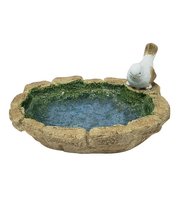 Sie lieben es, die Vögel bei ihrem munteren Treiben zu beobachten und freuen sich über jeden gefiederten Gast in Ihrem Garten? Dann bieten Sie den Tieren doch die Möglichkeit, bei Ihnen ausgiebig zu trinken und zu baden. Besonders im Sommer, bei heißen Temperaturen oder im Winter, wenn alles vereist ist, benötigen die Vögel zusätzliche Wasserquellen. Mit der Vogeltränke von Dehner schaffen Sie einen Trink- und Badeplatz, der darüber hinaus dank seiner niedlichen Vogelapplikation als hübscher Blickfang in Ihrem Garten dient. Außerdem ist das robuste Steinzeug witterungsbeständig, sodass Sie lange Freunde an dem Vogelbad haben werden.