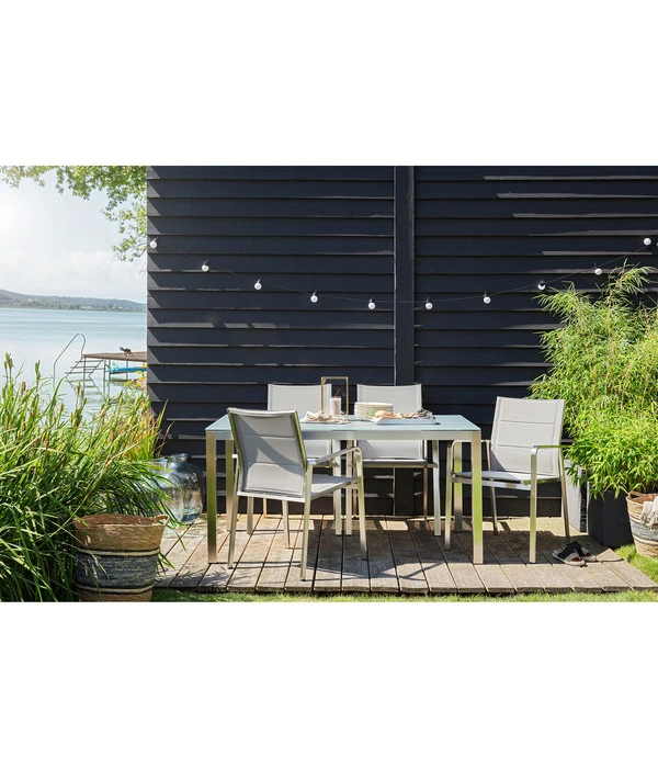 Dass dieser Gartenstuhl etwas Besonderes ist, haben Sie auf den ersten Blick erkannt. Denn ein Gestell aus Edelstahl ist alles andere als normal. Es macht den Dehner Stapelstuhl Nantes besonders stabil und robust sowie witterungsbeständig und äußerst pflegeleicht. Gleiches gilt auch für seine Bespannung, die aus dem hochmodernen Material Textilen hergestellt wurde. Und das ist formstabil und elastisch gleichermaßen – beste Eigenschaften für eine Sitz- und Rückenbespannung. Darüber hinaus ist Textilen auch noch UV-beständig, pflegeleicht und äußerst robust. Wenn Sie sich also in Zukunft in Ihren Dehner Stapelstuhl Nantes setzen, werden Sie spüren, wie stabil er ist und wie wunderbar bequem es sich anfühlt, wenn sich die Sitzbespannung an den Körper anpasst. Sinken Sie also schon bald hinein, in Ihren wunderschönen Dehner Stapelstuhl Nantes und genießen Sie all seine Vorteile!