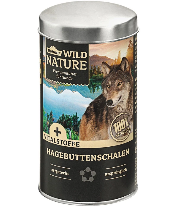 Hagebutten und ihre Schalen sind extra reich an Vitamin C. Kein Wunder also, dass auch die Dehner Wild Nature Hagebuttenschalen 250 g mit diesem wertvollen Vitalstoff vollgepackt sind! Sie gehören zu einer ganzen Produktpalette von Dehner Wild Nature, mit der Sie Ihren Hund artgerecht nach dem BARF-Konzept ernähren können. Einfach eine Fleischsorte mit Flocken und Öl kombinieren! Die Dehner Wild Nature Hagebuttenschalen 250 g komplettieren das Konzept und versorgen Ihren Vierbeiner gezielt mit Vitamin C, was die Hunde-Gesundheit langfristig steigern kann.