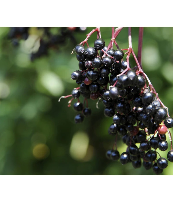 Schon seit dem Altertum ist der Holunderbusch eine wichtige Kultur- und Heilpflanze. Aus den Blüten können Sie Sirup kochen, der durch aufgrund der Blütenfarbe einen leichten Roséton annimmt und daher besonders attraktiv ist. Holunderblütentee wird in der Naturheilkunde gegen Fieber und bei Erkältungskrankheiten eingesetzt. Die Beeren enthalten viele Vitamine, Kalium und sogenannte Anthocyane, die den Körper vor freien Radikalen schützen sollen. Aber wichtig: Die Beeren dürfen nie roh verzehrt werden. Gekocht ergeben sie einen gesunden und schmackhafen Saft oder köstliche Marmelade.