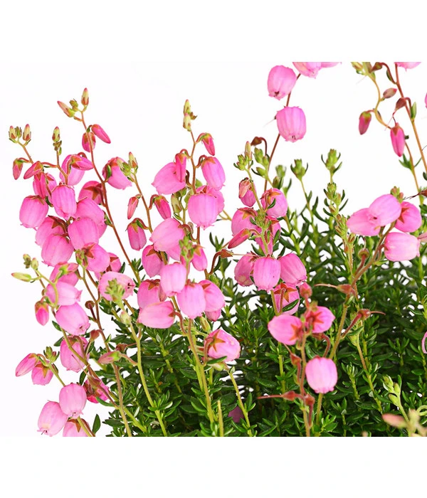 Hier können wir Ihnen eine ganz besondere Heide-Schönheit präsentieren: die Irische Glockenheide. Wie der Namen schon andeutet, stammt dieser reizvoller Herbstblüher aus Irland, ist aber auch in Teilen Frankreichs, Spaniens und Portugals beheimatet. Die immergrüne, breitbuschig wachsende Pflanze zeigt ab Juli/August dicht an dicht stehende glockenförmige Blüten, die in strahlendem Farben leuchten und deren Blütenpracht bis in den Oktober hinein ein toller Blickfang im Garten und auf dem Balkon sind. Die dunklen Blätter dieser dekorativen Heidesorte sind wechselständig, rundlich-oval und haben einen leicht eingerollten Rand.