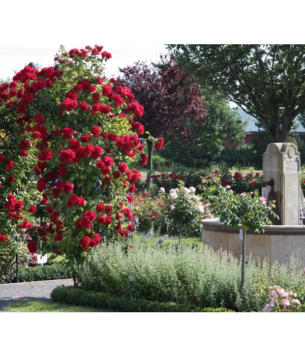 Kletterrosen, die einen Teil einer Hauswand mit ihrer blutroten Blütenpracht bedecken, sind den ganzen Sommer über ein fantastischer Anblick. Einen in voller Blüte stehenden Rosenbogen zu durchschreiten, ist ein ganz besonderes Erlebnis. Wofür Sie sich auch entscheiden, stabile Rankgitter, die ‘mitwachsen‘ und romantische Rosenbögen finden Sie natürlich auch gleich hier bei Dehner.Ideale RosenkavaliereWer ausreichend Platz hat kann die rotblühende Kletterrose ‚Amadeus®‘ mit weiß blühenden Kletterpflanzen, wie z.B. der Clematis-Hyide ‚Madame le Coultre‘ oder der weißen Kletterrose ‚Ilse Krohn Superior®‘ kombinieren und sich jeden Sommertag aufs Neue fragen, welche Blütenfarbe die Schönste ist.