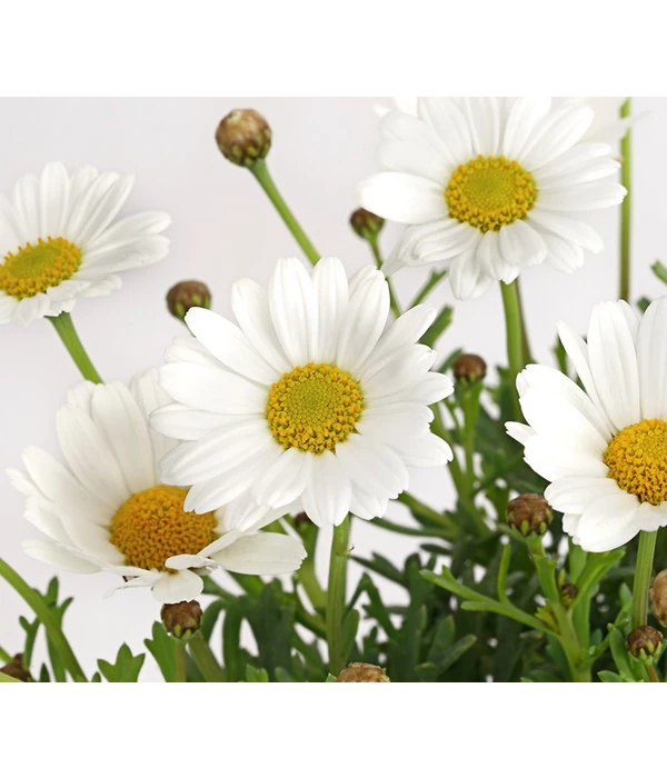 Die Margerite ist ursprünglich auf den Kanarischen Inseln beheimatet und obwohl dieser buschig wachsende Korbblütler in unseren Breiten nicht winterhart ist, zählt die Margerite, neben Geranien und Petunien, zu den beliebtesten Beet- und Balkonblumen. Als hübsche Wildblume sieht man sie oft auf bunten Wiesen weiß leuchten, doch auf Balkon und Terrasse umhüllt sie uns mit einem mediterranem Flair. Mit unentwegten Blütenzauber und einer unglaublichen Blütenfülle bringt sie uns sommerliches Feeling ins Haus, sodass Urlaub auf Balkonien schöner sein kann, als sich mancher vielleicht vorstellen kann. Dabei Bedarf es noch nicht einmal an gärtnerischen Kenntnissen, um in den Genuss der weißen Blütenpracht zu kommen.