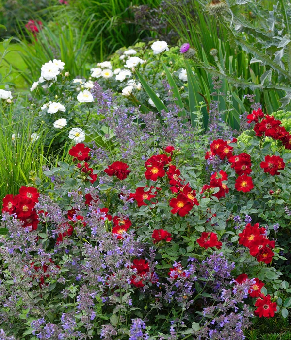 Sie möchten die bedrohten Wildbienen nicht nur mit dem Rosen-Set Insektenfreundlich unterstützen? Dann ergänzen Sie die Kleinstrauchrosen mit anderen insektenfreundlichen Pflanzen wie Duftnessel, Salbei und Katzenminze. Als niedrige Vordergrundbepflanzung eignet sich polsterbildender Feld-Thymian und um die Bienen, Hummeln und Schmetterlinge schon früh im Jahr satt zu machen, bieten sich Zwiebelblüher wie Schneeglöckchen, Winterlinge und Leberblümchen an.