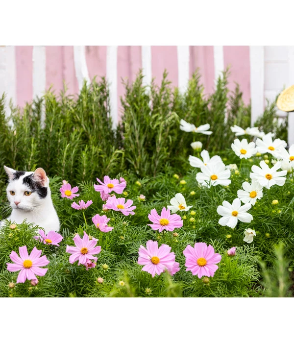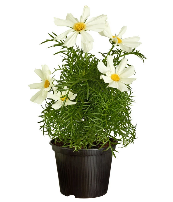 Das Schmuckkörbchen, hierzulande auch oft Kosmee genannt, trägt seinen Namen zu Recht: Aus dem feingefiederten Laub stehen zarte, filigrane Blütenstängel, die bei richtiger Pflege bis zu 70 cm hoch werden können. Wunderschöne dahlienförmige Blüten in Weiß oder diversen Rosatönen, mit einem Durchmesser von bis zu 10 cm, machen diesen Sommerblüher perfekt. Das Schmuckkörbchen gehört zur Gattung der Korbblütengewächse und gehört durch seinen aufrechten und reich verzweigten Wuchs sowie durch seine langeanhaltende Blüte zum Klassiker im Sommerbeet.