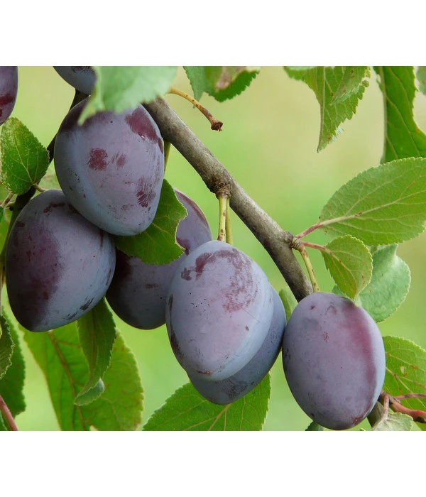 Wenn in Ihrem Garten bald die ersten dunkelblau-violetten Zwetschgen zwischen dem grünen Laub leuchten, wissen Sie und Ihre Familie: Jetzt beginnt die Zwetschgenzeit! Und diese verspricht immer ganz besondere Genüsse: ob frisch verzehrt, ob süß als Zwetschgenkuchen, Zwetschgen-Knödel, Kompott und Marmelade oder pikant als Beilage zu dunklem Fleisch und Wild – Zwetschgen lassen sich unglaublich vielseitig in der Küche verarbeiten. Wie gut, dass Ihre Zwetschge ‘Katinka‘ bekannt ist für ihre üppige Blüte und die reiche Ernte, mit der sie Sie sogar meist schon im ersten Jahr nach der Pflanzung beschenken wird! Die Früchte der Zwetschge ‘Katinka‘ haben ein grün-gelbes Fruchtfleisch mit einem herrlich süß-säuerlichen Aroma und lassen sich leicht vom Stein lösen. Kein Wunder, dass diese Züchtung aus Stuttgart-Hohenheim zu den besten, frühreifenden Sorten zählt.